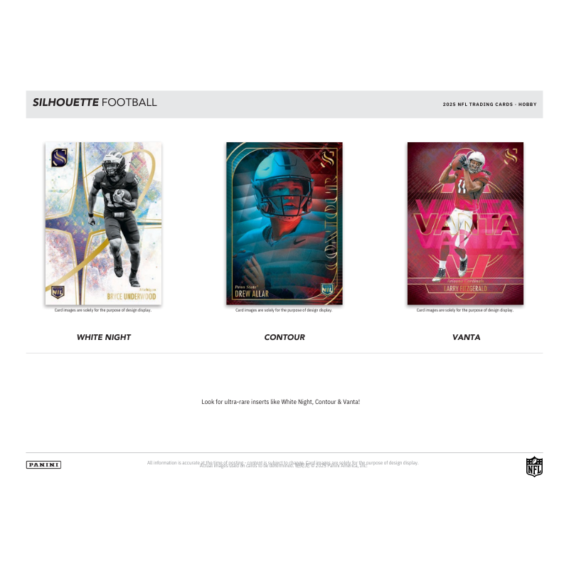 The 2025 Panini Silhouette Football Hobby 10 Box Case brings a premium collecting experience centered around some of the most visually striking designs in the hobby, highlighted by the iconic Silhouette autograph and memorabilia cards collectors chase every year. Known for its bold photography, clean layouts, and large swatches paired with player signatures, this release showcases top NFL stars, legends, and the newest rookie class in a high-end format.