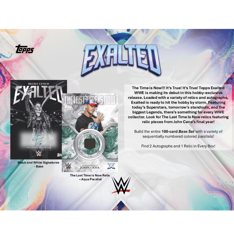 - The Time is Now!!! It’s True! It’s True! Topps Exalted WWE is making its debut in this hobby-exclusive release!